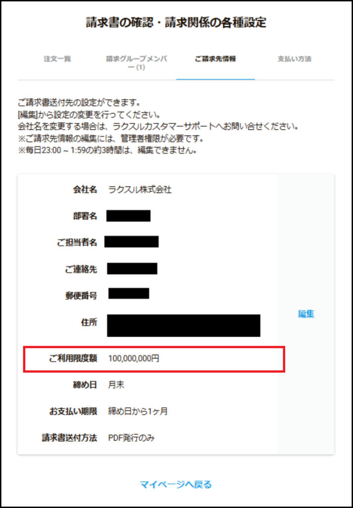 利用限度額は企業様ごとに異なりますため、上限に達している場合は、ラクスル請求書払い以外の支払い方法をご検討ください。