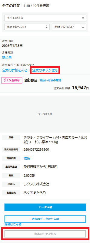 ご注文をキャンセルせずにデータを差し替えたい場合は、入稿したデータを差し替えたい(再入稿)をご覧ください。