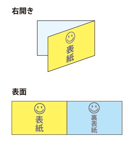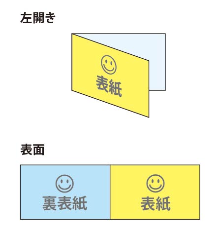 左開きと右開きで、表紙や中に折り込まれる面の位置が変わります。