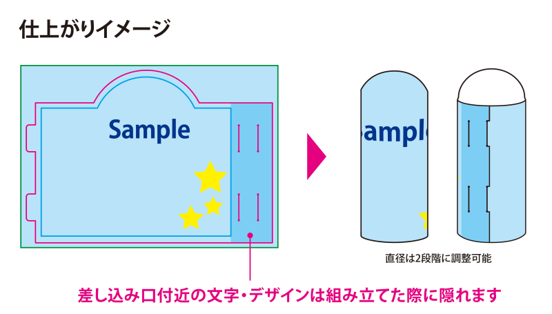 ▼円柱POP:組み立てた際に隠れる部分がございます