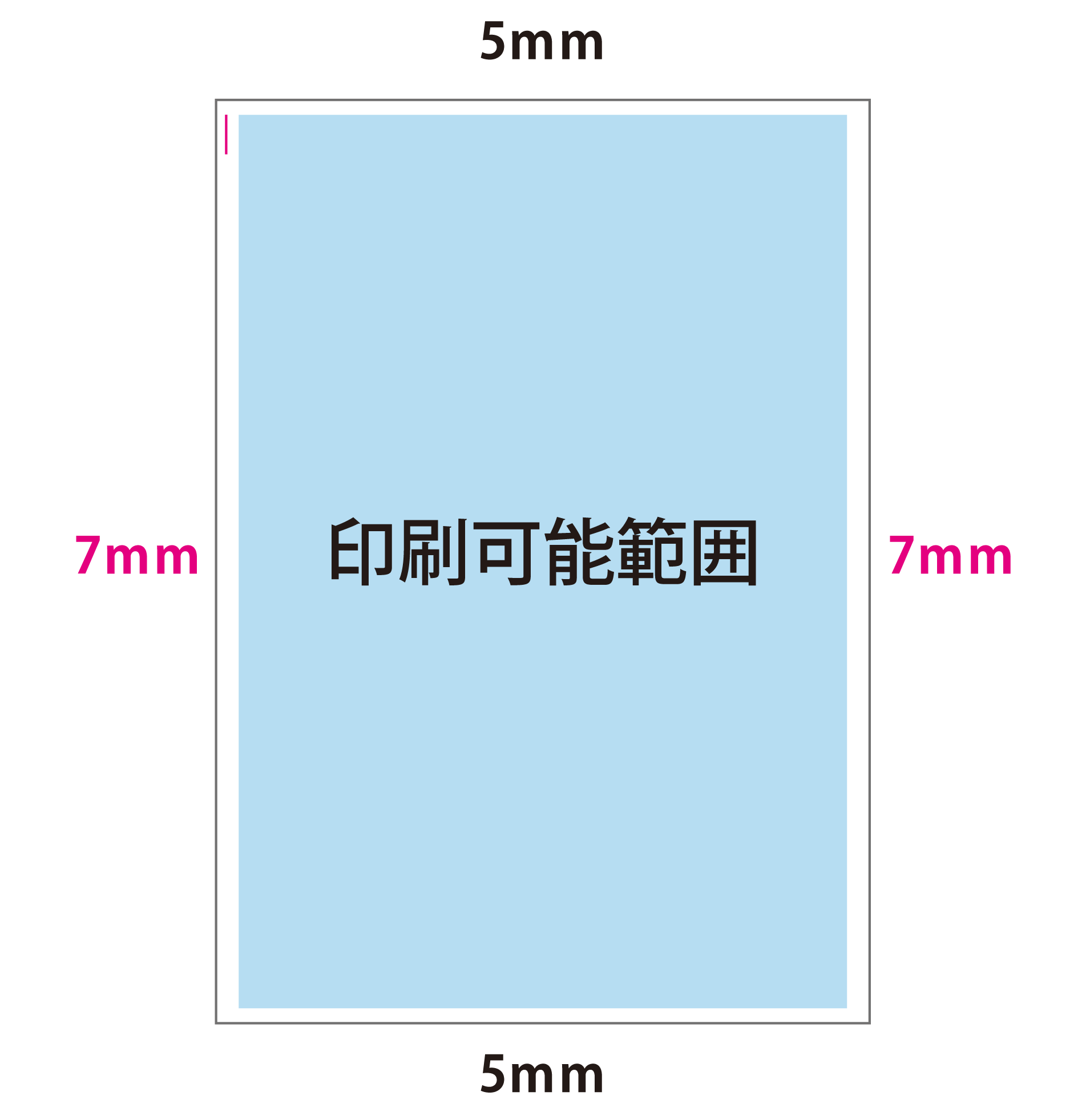 例:タテ左綴じ[上1ヶ所] の場合(平綴じは綴じ位置とその対向の辺が7mm、その他は5mmになります)