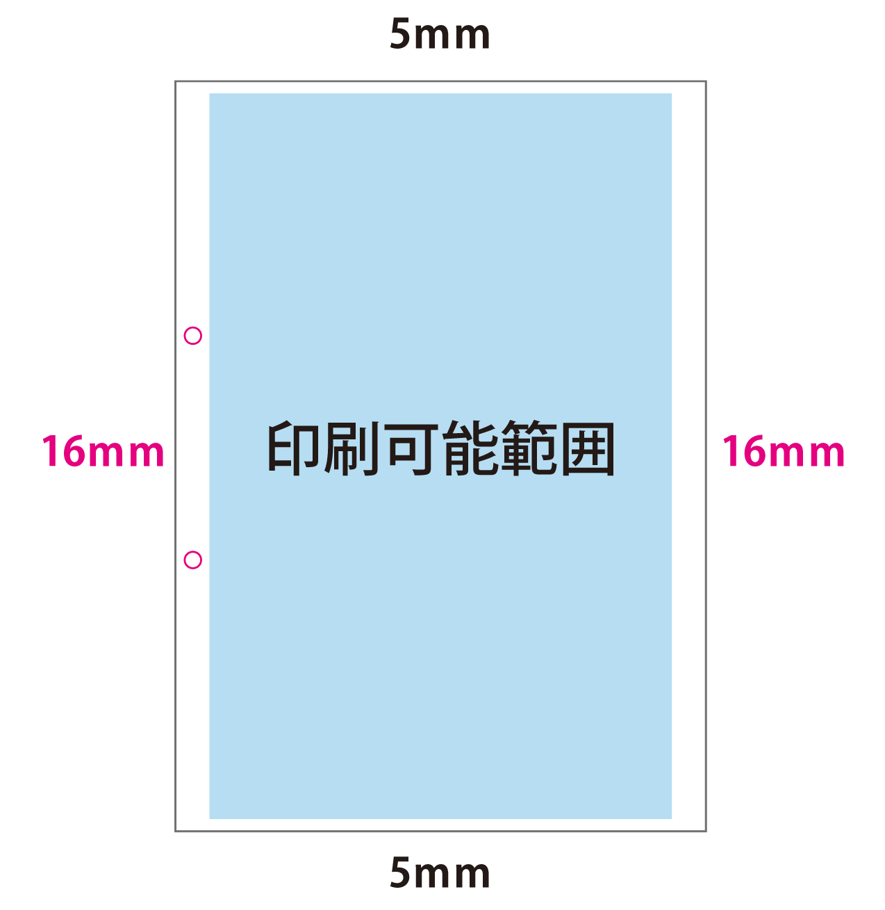例:タテ左綴じ[上1ヶ所] の場合(平綴じは綴じ位置とその対向の辺が7mm、その他は5mmになります)