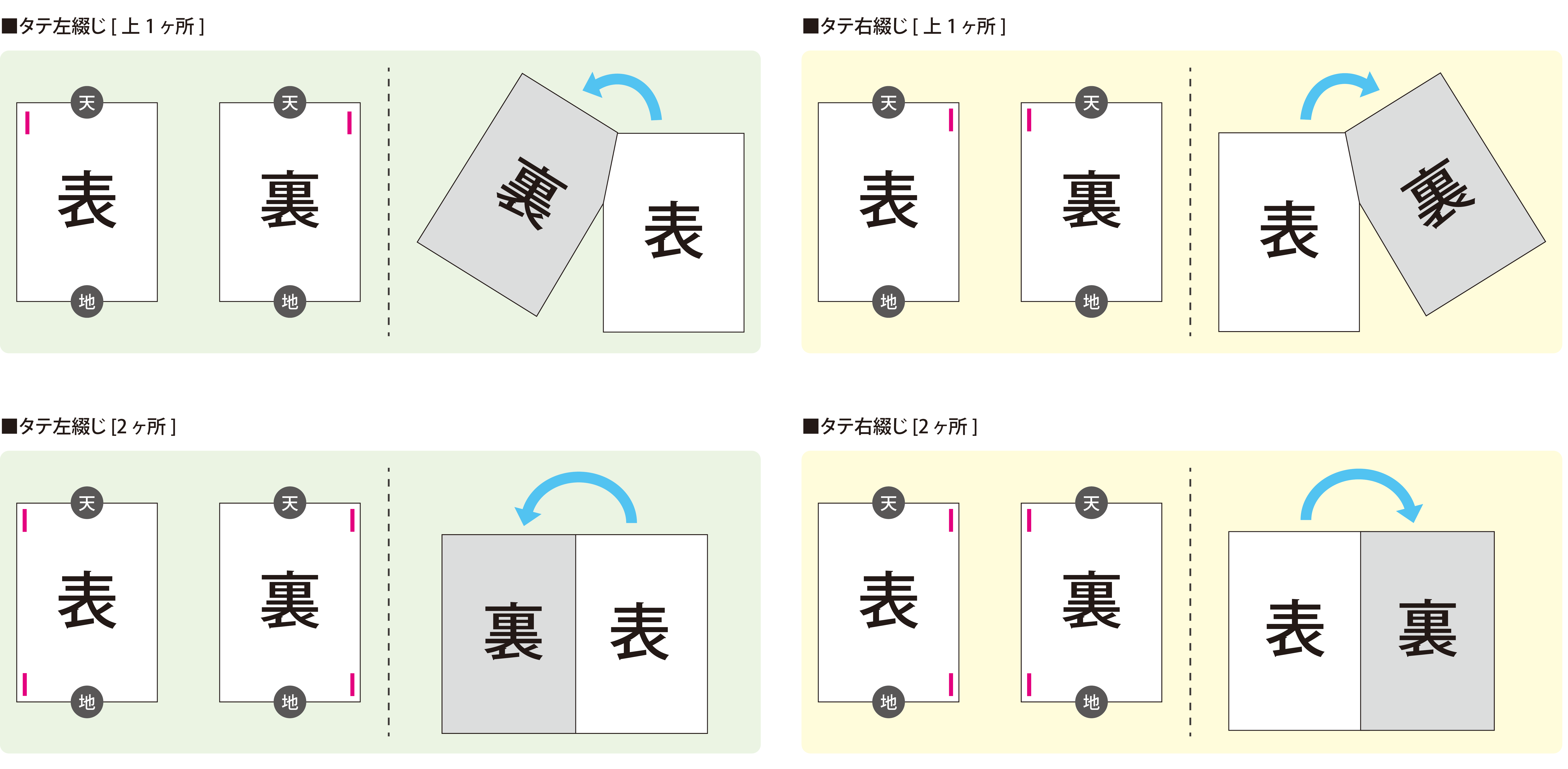各ご注文内容の綴じ位置は下記の通りになります。