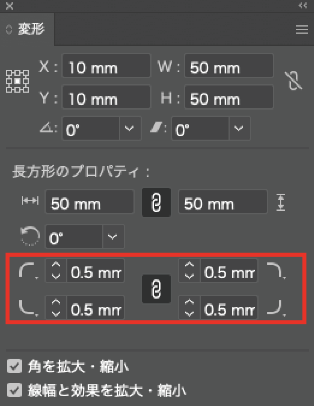 - 下図のように角が丸くなります