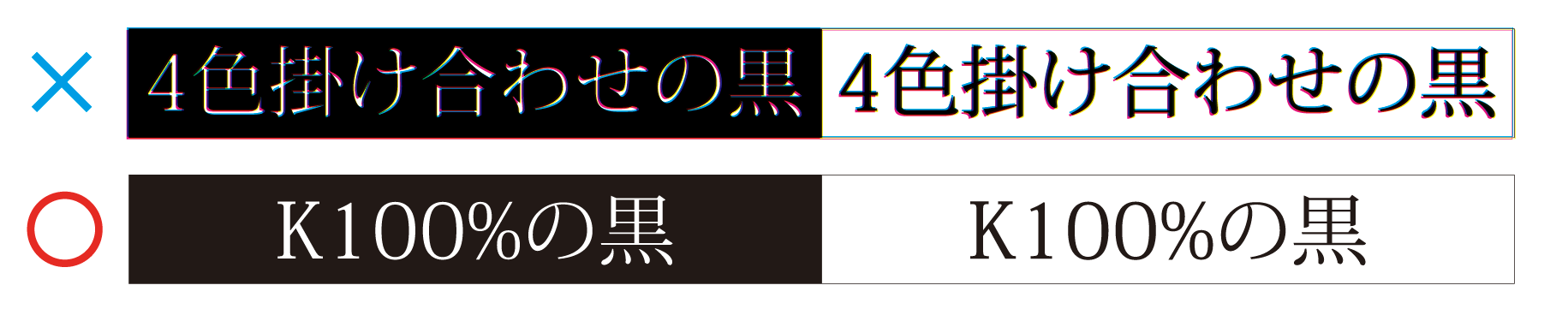 細かい文字や細い線は、K100%の黒での作成をおすすめします。