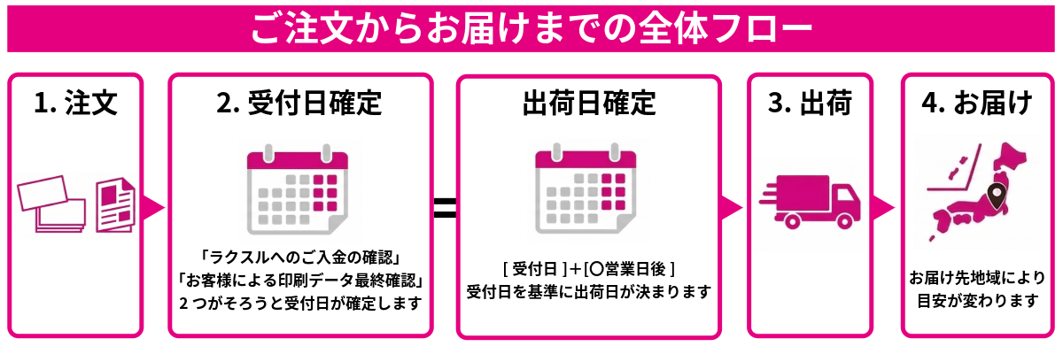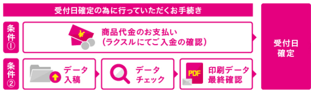 受付日は「入金確認」と「印刷データ最終確認」がそろった日です。