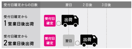 出荷日は、受付日が確定した日を基準に「○営業日後出荷」で決まります。
