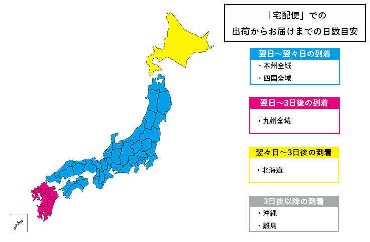 お届け先の都道府県によって到着までの目安が異なります。
