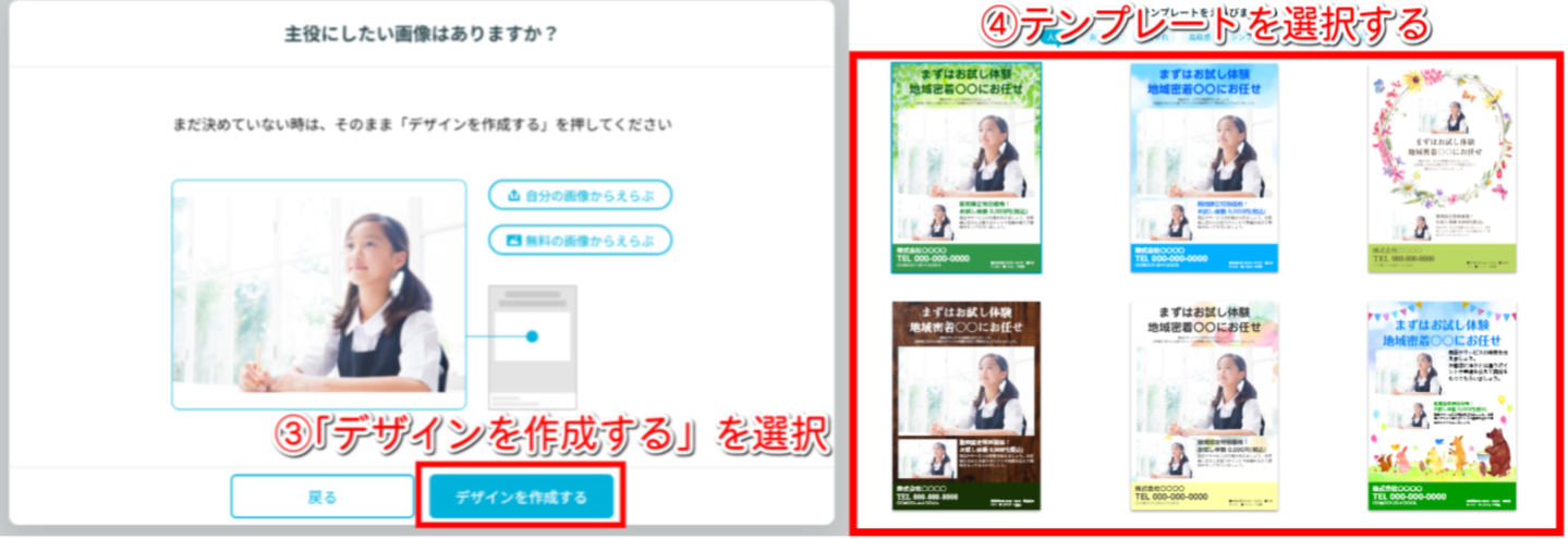 画像はあとからでも選択できますので、まだ決まっていない場合は、「デザインを作成する」を選択してください。