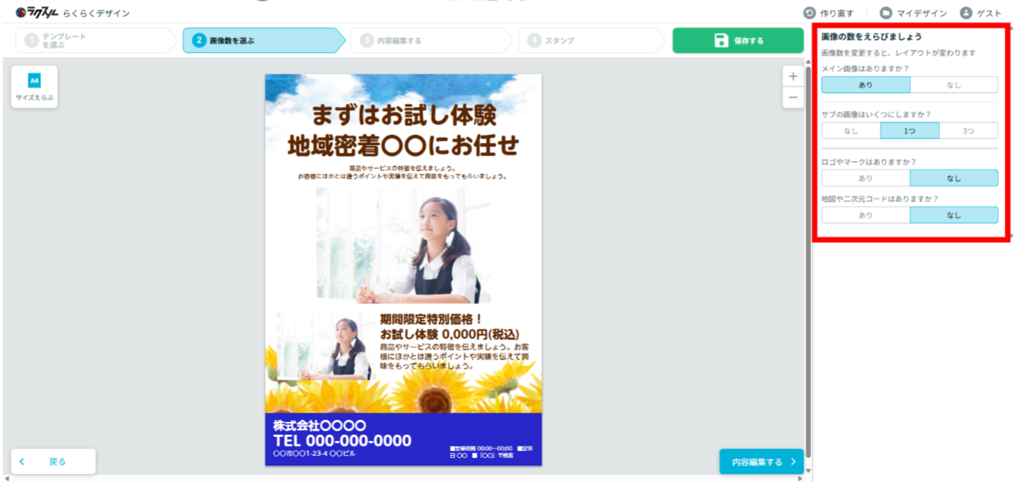 このページでは、らくらくデザインの利用方法についてご案内いたします。