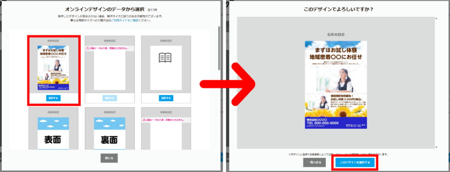 ※両面印刷のデータを入稿する場合は、該当のデザインを複数選択してください。