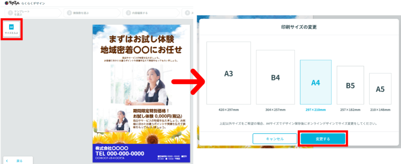 画面左上にある「サイズえらぶ」からサイズの変更ができます。