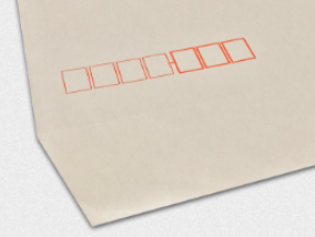 - FSC認証を得たクラフト紙で、封筒裏面底部にFSCマークが入っています。