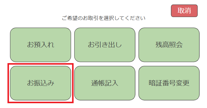 2.ATMの案内に沿って振込先の情報を入力、振り込みを行う
