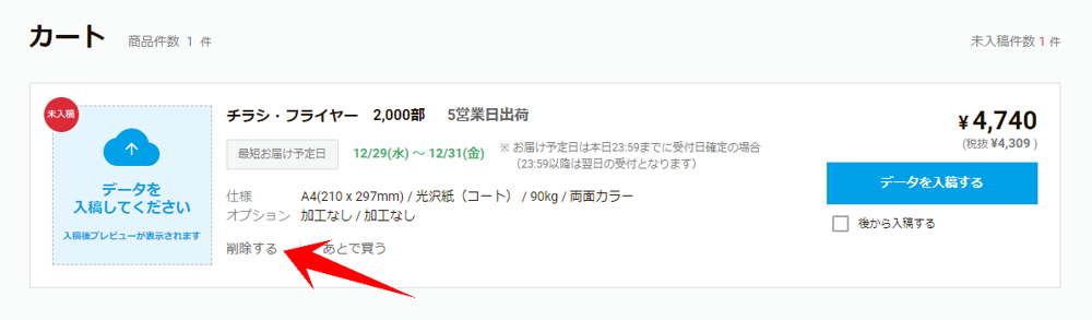後から入稿を選択することで、この時点でのデータ入稿が不要となります。