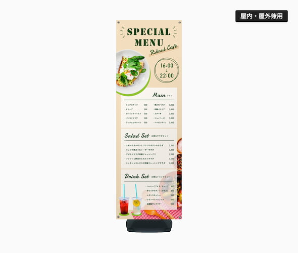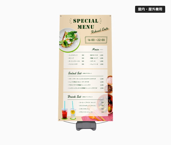 標準サイズよりも存在感があり、高いPR効果が望め、屋外でもご利用いただけます。