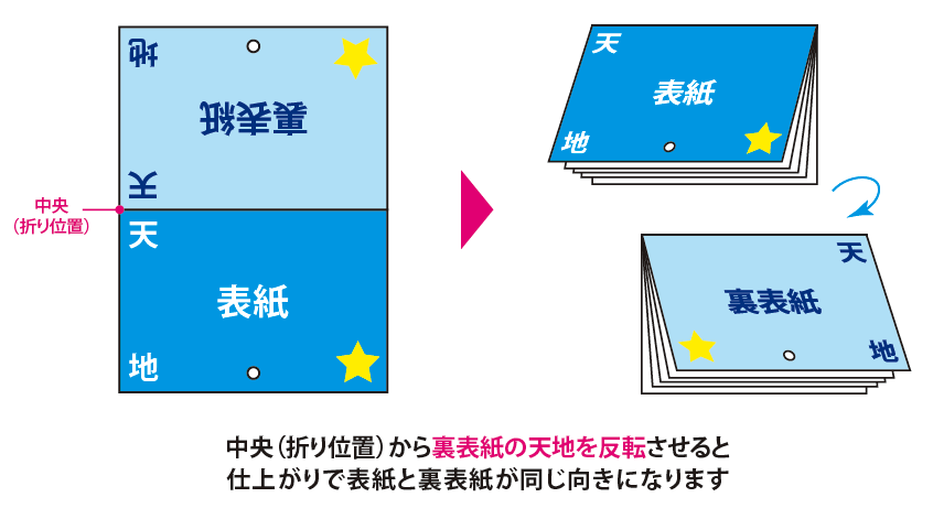 中綴じ:表紙・裏表紙の天地の向きにご注意ください