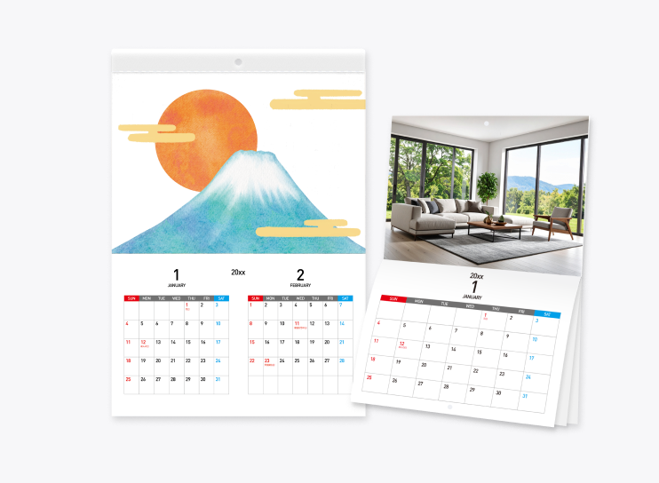 商品は「卓上カレンダー」と「壁掛けカレンダー」の2種類をご用意しています。
