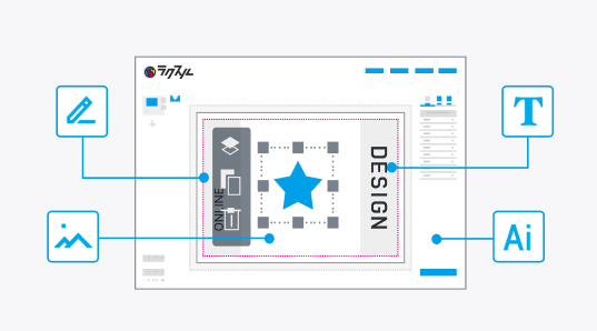デザインソフトをお持ちでないお客様でも、ブラウザ上で簡単にデザインが作成できるサービスです。