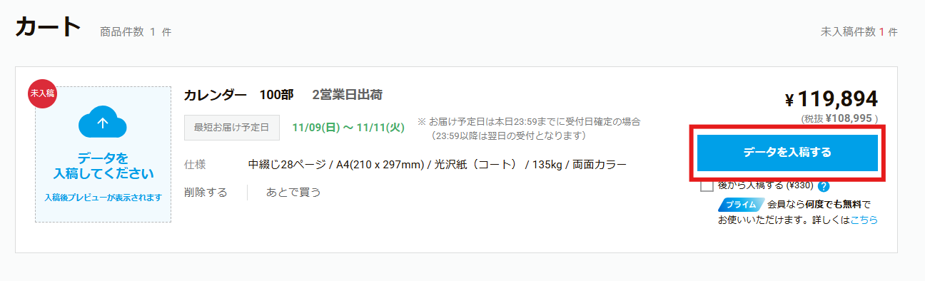 内容に間違いがなければ「データを入稿する」をクリックしてください。