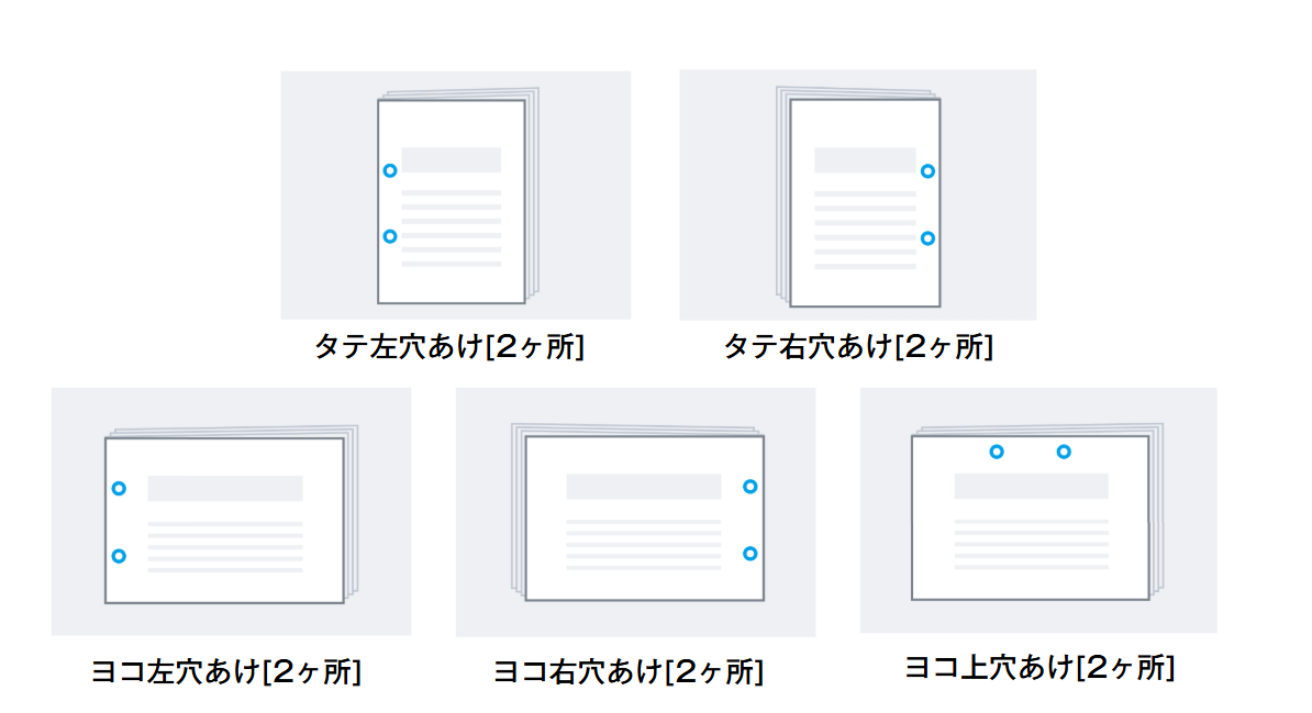 | ヨコ上綴じ[2ヶ所] | ○ | ヨコ上穴あけ[2ヶ所] |