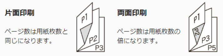 用紙の表面だけに印刷したい場合は片面印刷、両面に印刷したいときは両面印刷をご選択ください。