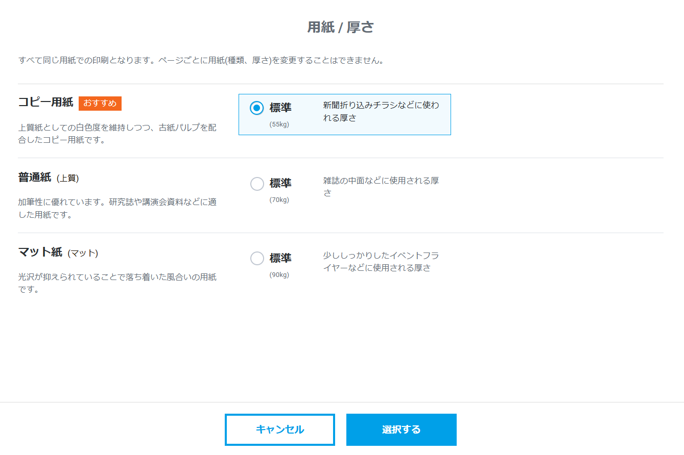 お安くお買い求めいただく場合は、コピー用紙がおすすめです。