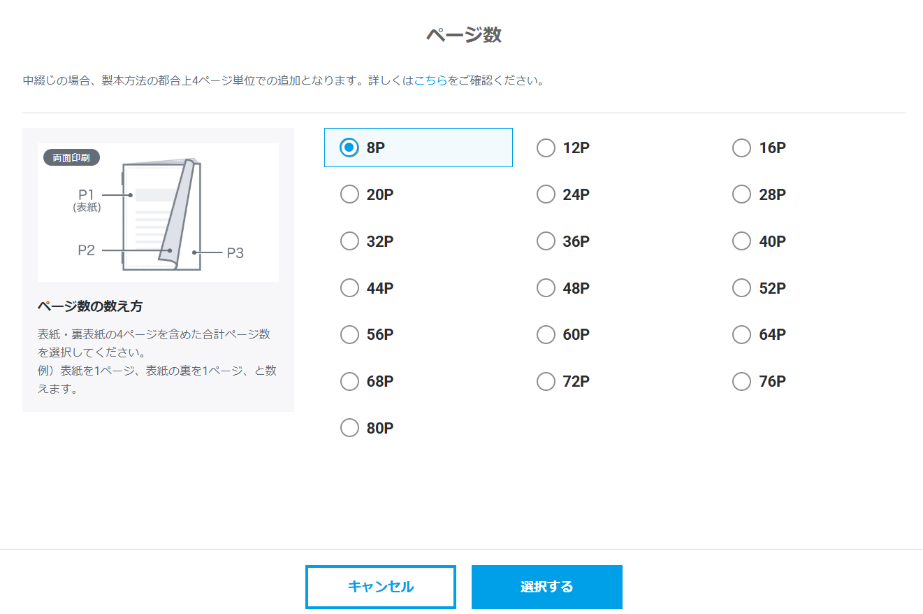 中綴じは、製本方法の都合上4ページ単位での選択となります。