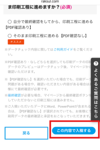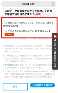 オペレーターチェック後に、仕上がりをPDFで確認したい場合は「PDF確認あり」を選択してください。特に最終確認が不要な場合は「PDF確認なし」を選択してください。