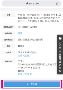 作成したデザインと注文を紐づけるデータ入稿を行います。