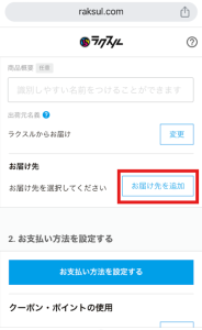 下にスクロールし、「お届け先の追加」からお届け先の設定を行います。