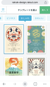 テンプレート選択画面でお好みのデザインを探して選択します。