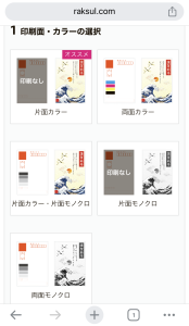 作成したデザインがカラーの場合は「片面カラー」を、白・黒・グレーのみの場合は「片面モノクロ」を選択します。