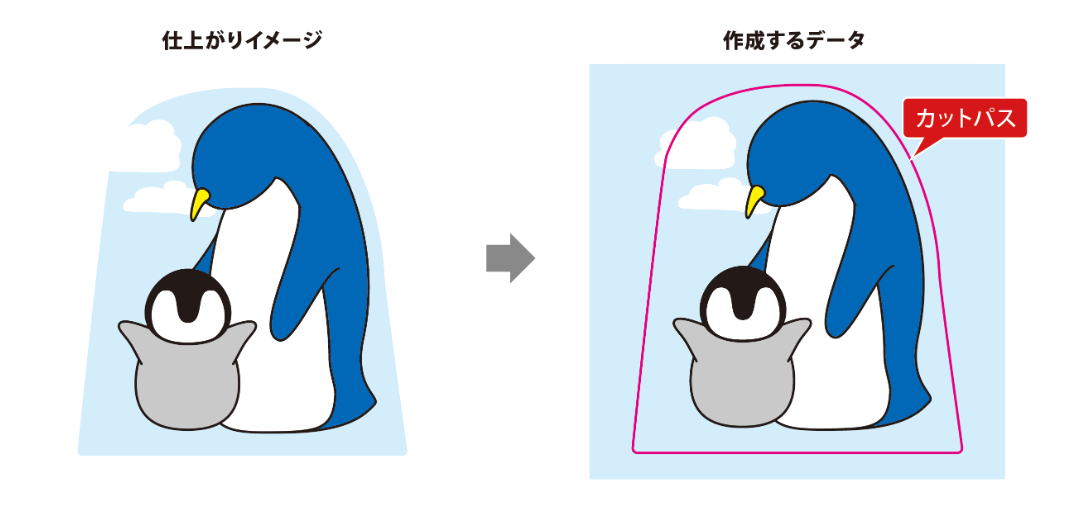 自由カットパネルのデータには必ず、カットする位置を示す「カットパス」が必要です。