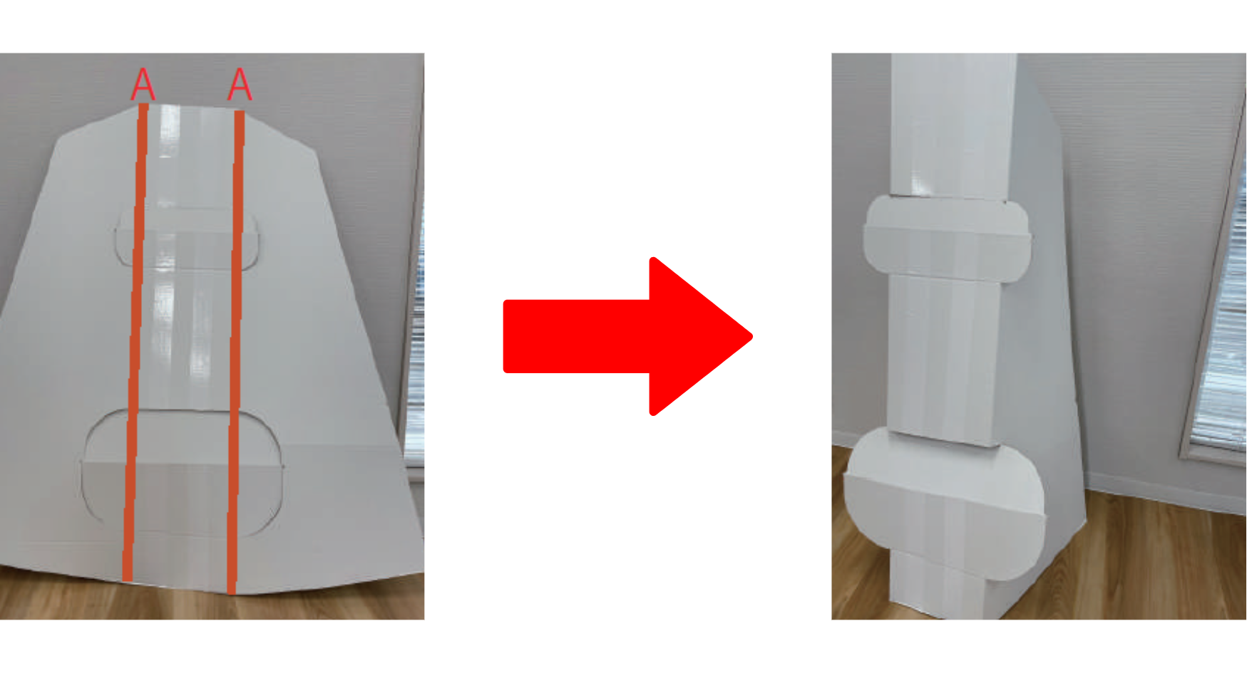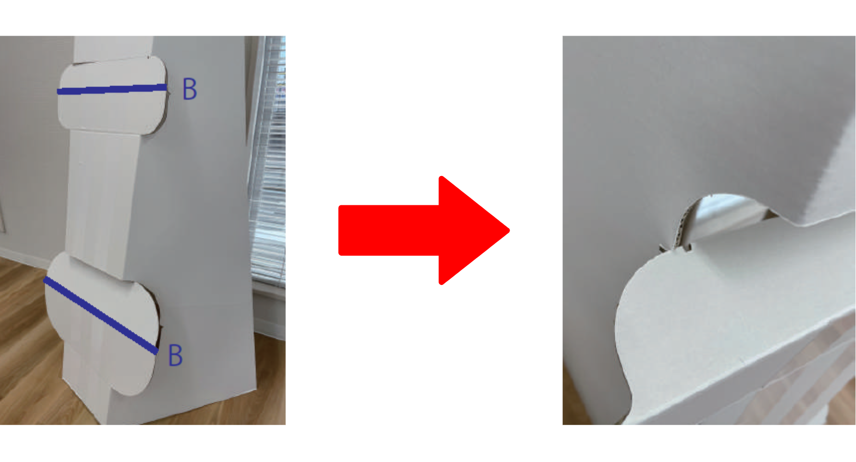 2.Bのラインを山折りにし、くぼみ同士をはめ込む