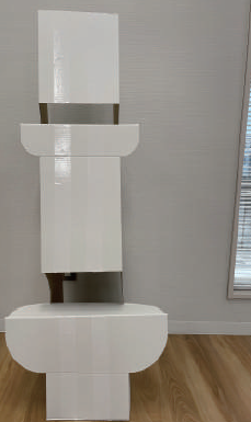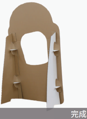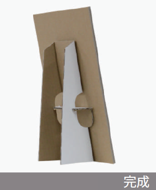 定型パネルは、紙製スタンドの裏に両面テープを仕込んで配置した状態で納品します。