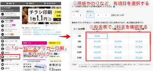 1、トップページ左から、「シール・ステッカー印刷」を選択してください。