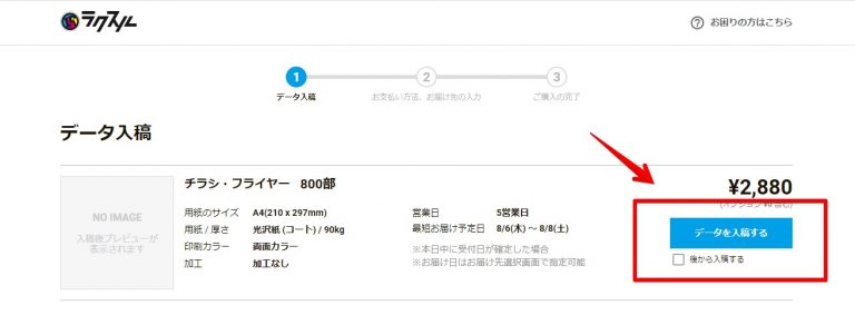 - データに問題がないことを確認したら、「データを入稿する」を選択してください。