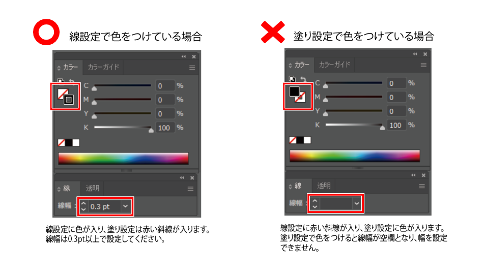 ※線幅が0.3pt以下の場合は、0.3pt(0.1mm)以上になるよう修正してください。