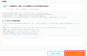 PDFで仕上がりを確認したり、データチェック結果を確認したい場合は、チェックボックスのチェックを外してください。※データに不備があった際はメールで最終確認を依頼する場合があります。