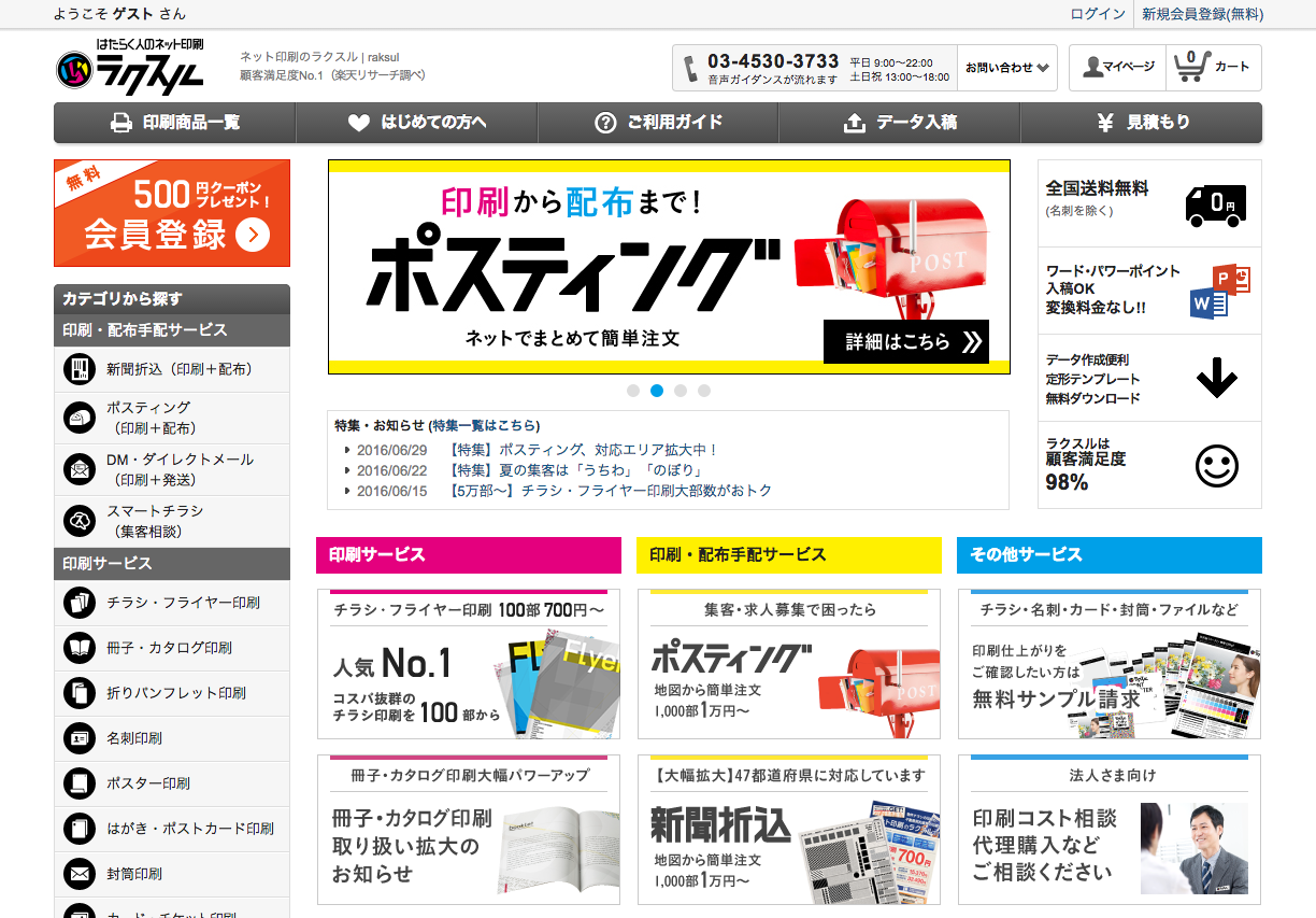 ネット印刷のラクスル トップ