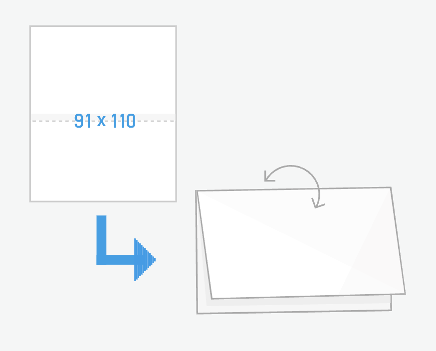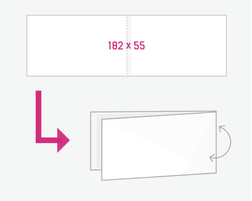 名刺サイズが横に繋がっている、左右に開くタイプの二つ折りです。書き込みやスタンプには上質紙や片面光沢紙がおすすめです。