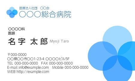 医療系名刺は「博士(医学)」「〇〇学会専門医」といった、重要な肩書きが多くなりがちです。これらを並列に並べると可読性が下がるため、氏名の右側や上部に小さめのフォントでまとめ、主要な所属先との視覚的な強弱をつけましょう。