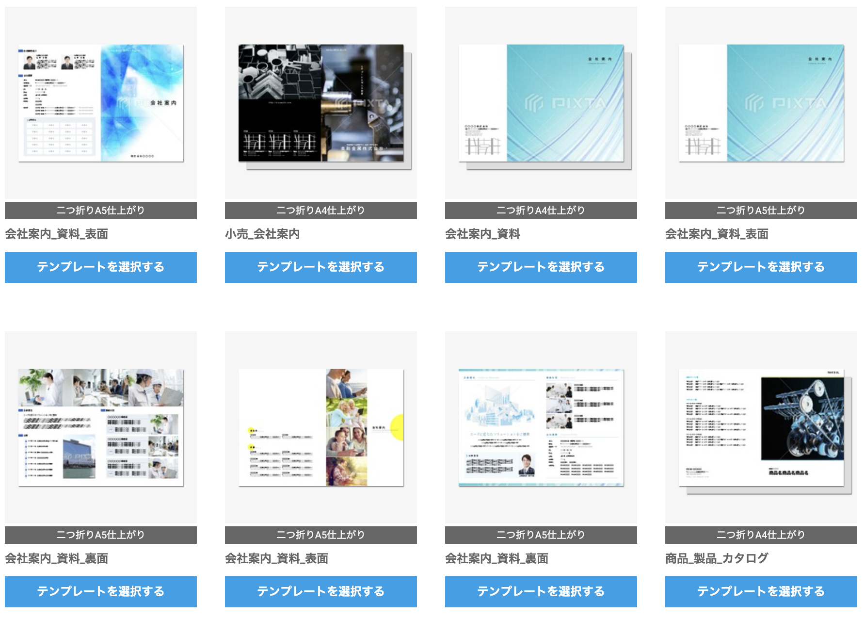 営業パンフレットの目的や業種に合わせて、さまざまなテンプレートが用意されています。