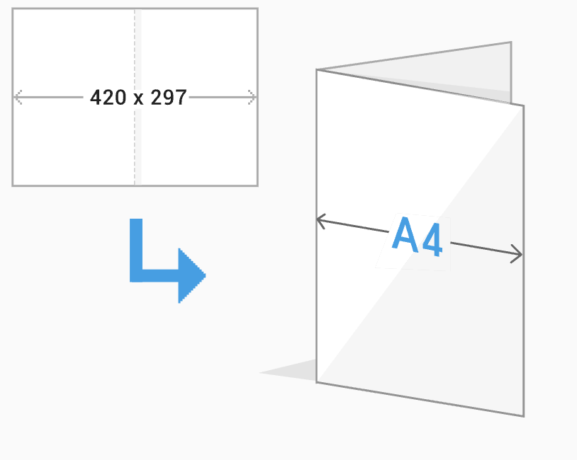 最もシンプルな折りパンフレットの形式。展示会などのイベントでのパンフレットや会報、旅行案内、会社案内・学校案内によく使われます。