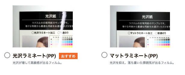 PET は硬くて伸縮性が低いので曲面には貼りにくく、PVC は柔軟な反面 PET ほどの透明度は出せません。用途に応じて選びましょう。