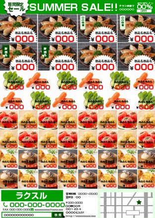 多くの商品を紹介したいスーパーに適したデザインテンプレートです。たくさんの商品を紙面に載せることができます。