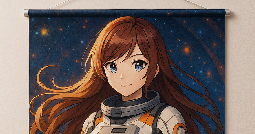 同人タペストリーの制作をお考えの方へ。パイプ加工&紐付きでそのまま設置可能!おすすめの生地・サイズ・デザインのポイントを詳しく解説。イベント販売やコレクションに最適な高品質なタペストリー印刷ならラクスルにお任せください。