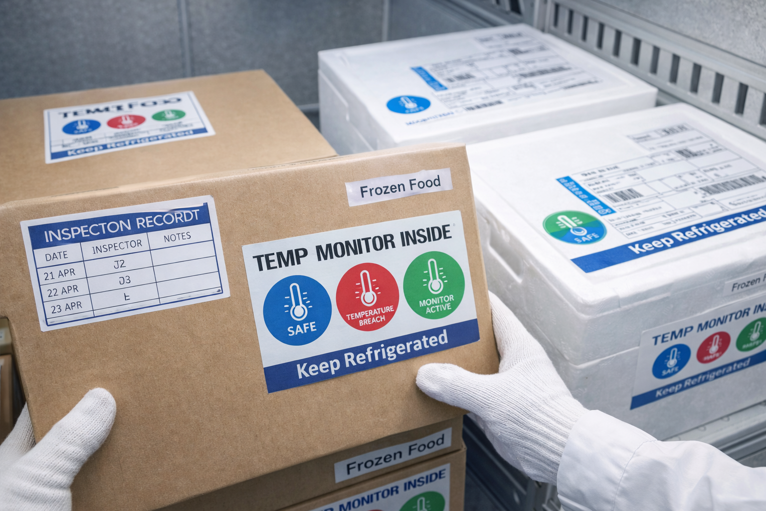 輸送中や保管中の温度逸脱をチェックするのが目的のシーン。一度でも設定温度を超えたという証拠(証跡)として残したい用途に最適です。