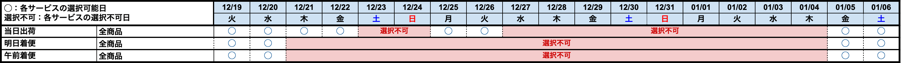 | 3営業日後出荷のご注文 | 12月26日 23時59分まで | 12月28日 23時58分まで |